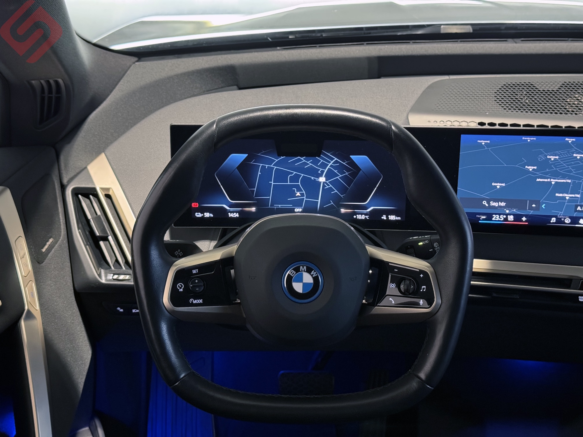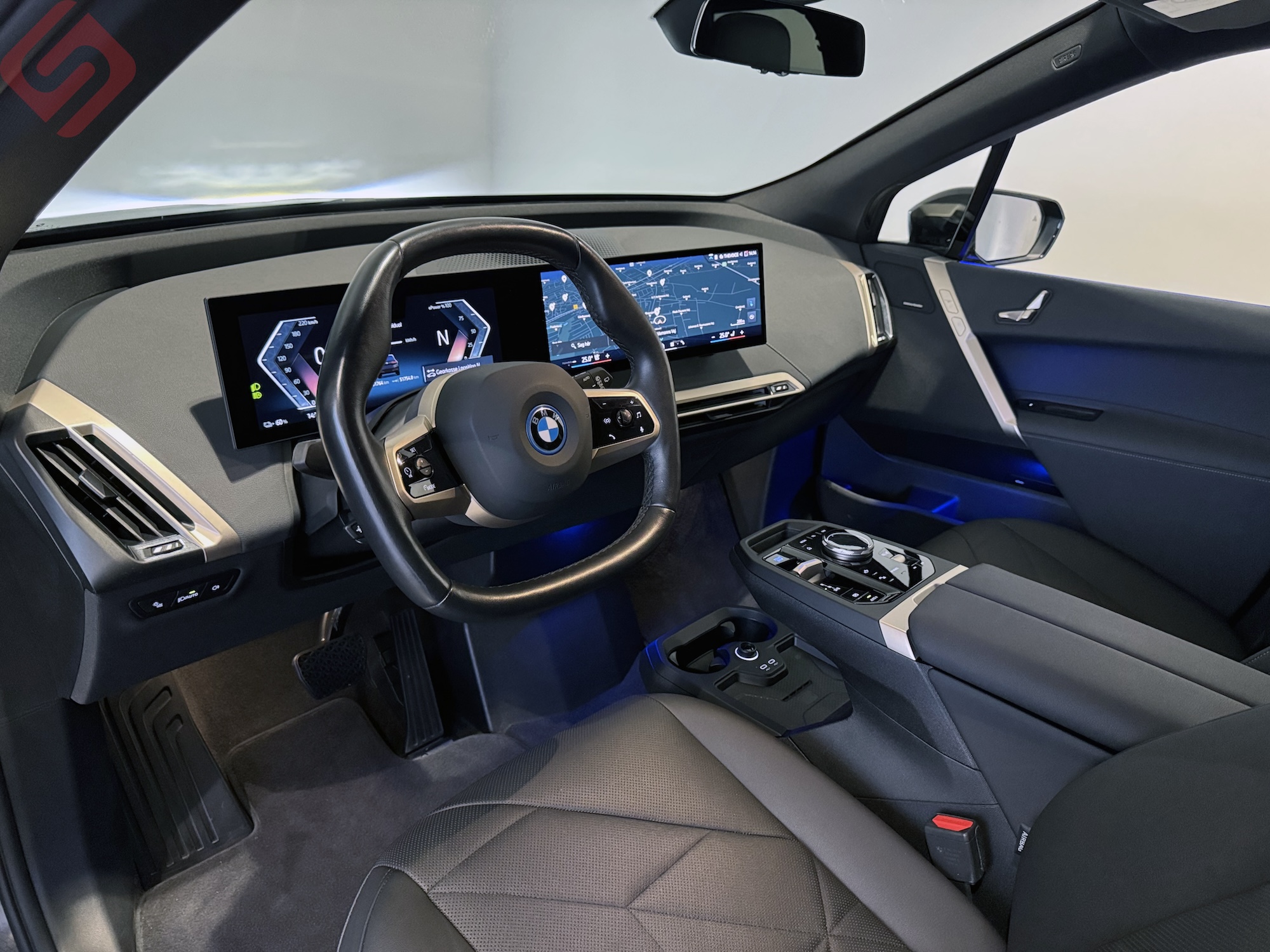 BMW iX xDrive40 Sport i Saphir sortmetal med 326 hestekræfter. Af udstyr kan nævnes sportspakke indvendig og udvendig, blå M-sport bremser, Navigation Professionel, Harman Kardon soundsystem, bakkamera, 360 graders kamera, Head-up display, BMW Iconicsound Electric, BMW Drive recorder, parkeringssensor for- og bag, komfort adgang, BMW Individual Shadowline, varmepumpe, varmekomfort pakke, elektronisk kabineklimatisering, forberedelse af batteri, BMW LASER-lygter, adaptive lygter m kurvelys, el-ratstamme, ratvarme, fjernlysassistent, panorama glastag med Sky-lounge, sort himmel, El-Svingbart anhængertræk, alarm, trådløs mobilopladning, ConnectedDrive, sort læderkabine m. sportsæder, Fuldjusterbare el-sæder, lyspakke, personal eSIM, Businesspakke, bremseassistent, BMW Live Cockpit Professional, Dynamic Drive, solafskærmning, Ambiente belysning, keyless-go, keyless-entry, Driving Assistant Professional, Collision warning, Active Protection, Active pedestrian Protection, Apple CarPlay, Android Auto, sportsmultifunktionslæderrat, 2-zone klima, aktiv fartpilot, Lane Assist m. rat vibration, Blindspot Assist, Parking Assistant Professional, Connected pakke Professional, instrumentpanel i læder, elektrisk bagklap m. fodsensor, WLAN Hotspot, kørecomputer, regnsensor, sædevarme for og bag samt armlæn, sædeklimatisering, DAB radio, auto. nedbl. bakspejl, elspejle med varme, bluetooth, splitbagsæde, isofix, 22″ BMW Aerodynamic 1020 Biocolor 3D glansslibning, alufælge, service ok, ikke ryger.